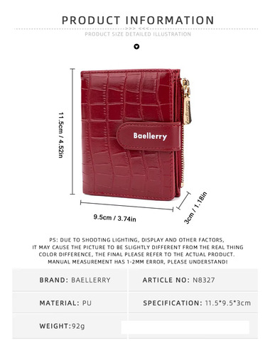 La Billetera Monedero Baellerry N8327 es la combinación perfecta de estilo y practicidad. Diseñada para la mujer moderna, esta billetera ofrece un diseño elegante y compacto, junto con una funcionalidad excepcional.