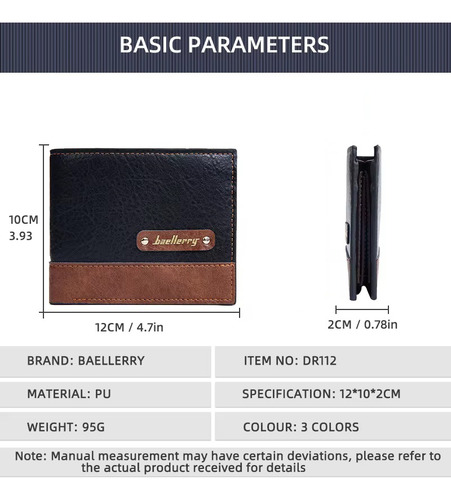Experimenta la combinación perfecta de estilo y seguridad con la Billetera Baellerry DR112. Fabricada con cuero PU de alta calidad, esta elegante billetera ofrece un diseño horizontal con cierre de cremallera y detalles sofisticados.