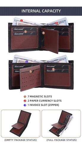 Multifuncional: Amplio espacio para tarjetas de crédito, billetes, monedas y otros objetos esenciales.