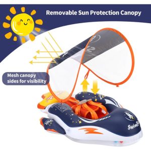 Protección solar UPF 50+: El toldo extraíble protege la piel de tu bebé de los rayos solares nocivos, permitiéndole disfrutar del agua sin preocupaciones.