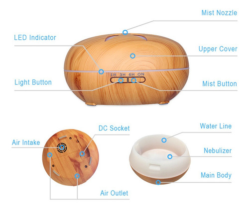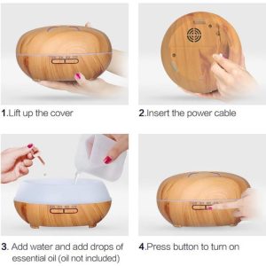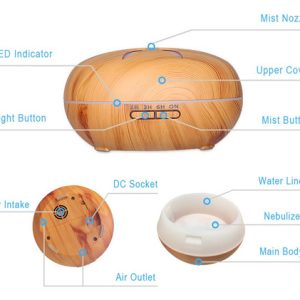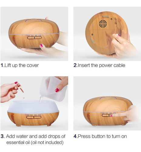 El estilo especial de grano de madera hace que el difusor sea hermoso y práctico cuenta con una gran capacidad de 500ml, puede aumentar eficazmente la humedad del aire, eliminar la sequedad y los olores, hidratar la piel, prevenir la gripe, mejorar la calidad del sueño, reducir la ansiedad, equilibrar los niveles hormonales y aumentar los niveles de energía.
