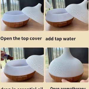 Después de agregar unas gotas de aceite esencial en el agua se llenan con el aroma de los aceites esenciales. El difusor de aromaterapia puede trabajar de forma continua durante hasta 8 horas. Con Temporizador, Puede elegir apagar después de 1 H /3 H/6 H, lo que es perfecto para el uso por la noche.