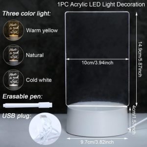 Tablero acrílico con luces LED: la base de madera está incrustada con una tira LED, y la tira de luz se controla con un botón para encender la luz; cuando la tira LED emite la luz, el panel acrílico se cubrirá con un brillo romántico, hermoso y cálido