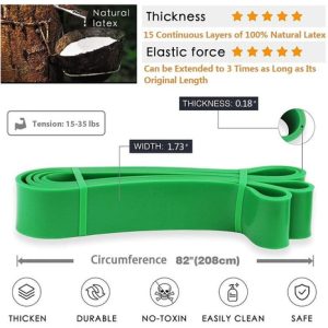 -Perfecto para cualquier tipo de ejercicio: estas bandas de entrenamiento verdes proporcionan resistencia de 50 a 120 libras. Nuestras bandas de goma de alta resistencia tienen resistencia media a pesada para ejercicios de pierna/espalda y resistencia dinámica para levantamiento de pesas. Las bandas de resistencia planas para dominadas son perfectas para ayudar a tus dominadas.