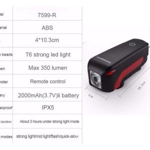 Mejora tu seguridad en cada recorrido con la Luz y Bocina ROCKBROS 7599-R. Este accesorio esencial combina una potente luz frontal y una bocina fuerte para garantizar que veas y seas visto y oído en cualquier condición. Diseñada para ser una herramienta versátil y confiable en tus trayectos.