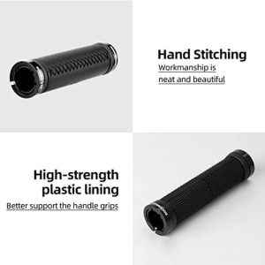 Material de alta calidad: el forro interior de nuestros mangos de bicicleta está hecho de plástico PP de alta resistencia, puede soportar mejor los agarres del mango, que es firme, estable y duradero. La funda está envuelta en suave piel de microfibra, que es cómoda. Patrón de mango de cuero cosido a mano, aumentando el soporte de la palma y el agarre de los dedos.