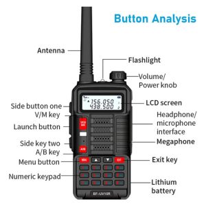 El radio UV10R está diseñado para adaptarse a diversas situaciones, ya que cuenta con una práctica función de linterna LED, lo que lo convierte en una opción ideal para actividades al aire libre. Cuenta con una batería de 2800 mAh. Está fabricado con materiales de alta calidad es resistente a los arañazos, corrosión y caídas lo que garantiza una durabilidad excepcional y una vida útil prolongada.