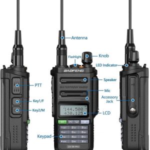 Versión de actualización UV-9VR PRO, la radio bidireccional con mejores capacidades impermeables y a prueba de polvo (no buceo), se puede sumergir en 5 pies de agua durante 30 minutos, y puede satisfacer las necesidades de deportes al aire libre, camping, montañismo, etc.
