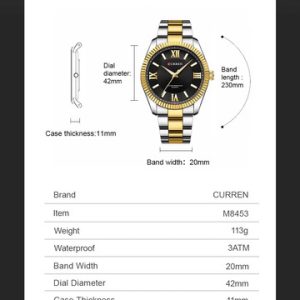 El reloj CURREN 8453 es un accesorio elegante que refleja un equilibrio perfecto entre la moda casual y el lujo discreto. Diseñado para hacer una declaración de estilo sin esfuerzo, este reloj combina funcionalidad con un diseño atractivo, perfecto para cualquier ocasión.