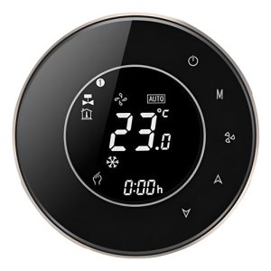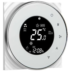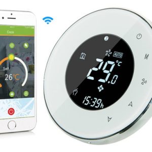 El termostato inteligente BECA BAC-6000 es la solución ideal para climatizar tu hogar u oficina de manera eficiente y personalizada. Diseñado para sistemas de aire acondicionado central y unidades de fan coil (FCU), este dispositivo te permite controlar la temperatura de forma precisa y cómoda, tanto desde la pantalla táctil como a través de tu smartphone.